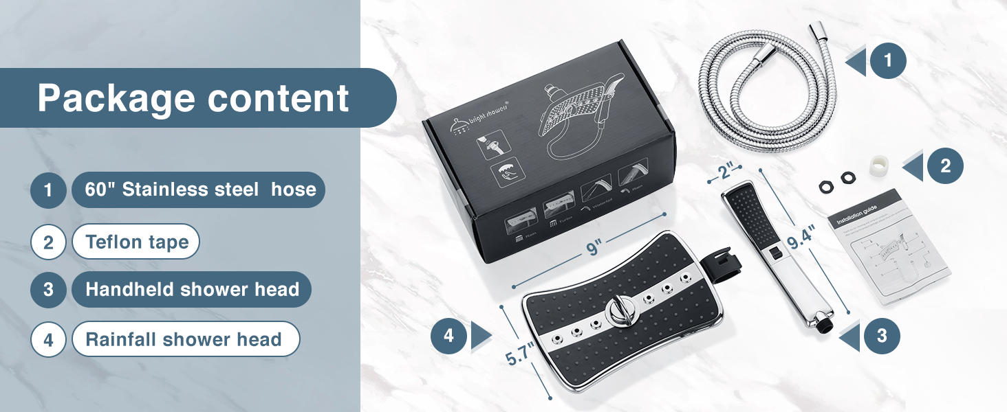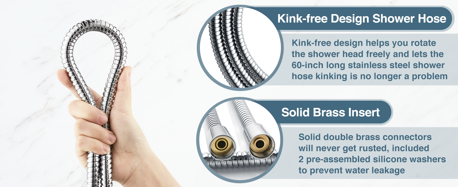 - PACKAGE INCLUDES - Flow restrictor & sand filter disk, high pressure all-inclusive showerhead kit, includes everything our customers need for hassle-free installation. Complete with 5ft stainless steel shower hose, shower arm mount, two rubber washers and a step-by-step installation guide and for a limited time only free Teflon plumbing tape.