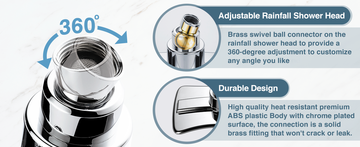 Shower Head Material:Premium & Durable ABS Plastic